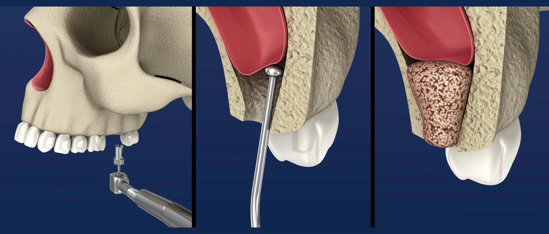 L’acte chirurgical se déroule sous anesthésie locale, éventuellement complétée par une sédation pour plus de confort. Le praticien réalise une incision gingivale afin d’accéder à la zone à traiter, puis procède au soulèvement contrôlé de la membrane sinusienne. Le matériau de greffe osseuse est ensuite mis en place pour favoriser la régénération, avant que la zone ne soit refermée à l’aide de sutures résorbables.